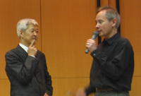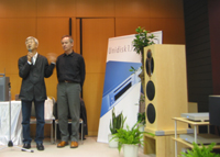| LINNブースで講演する、和田博巳氏とピーターバラカン氏 |