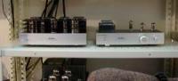 | カラーバリエーションも豊富なTRN Super12(左)、Eastern Electric製の真空管プリアンプ、真空管メインアンプ(右) |