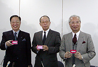 | 左から民放連・地上デジタル放送特別委員会委員長、テレビ新潟放送網会長の北川信氏、NHK理事の和崎信哉氏、ビーエス日本会長の漆戸靖治氏 |
