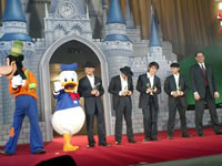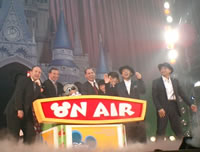 東京ビッグサイトにて、18時から多数の招待客とともにオーブン!親子などでにぎわうアトラクションゾーンはコンテンツエリアと呼ばれていたおり、スカパーやケーブルテレビの来賓客も多数見受けられた。19時を過ぎた頃、赤坂康彦・中山エミリのコンビでカウントダウンョーが始まる。アクロバットダンスの妙技に魅せられるのもつかの間、DA PUMPのシークレットライブが披露されるというもの。ライオンキングが取り持つ縁なのだが、実はかなり上手いというのが素直な筆者の感想。MTVでふと目にした記憶のある「if」や聴衆の前での初演奏となる「Circle of Life」には参ったしだい。そして、ABCのたたき上げでスポーツやエンタメに造詣の深いボブ・アイガーが登壇!DA PUMPを「ディズニーチャンネル」のゴールドメンバーに選定したというわけなのだ。(写真左)アイガーのせの高さは彼ら4人と比べていただくとおわかりいただけようか。(ドナルドのテンションの高さを見よ!)アイガー氏とコンピを組むのはもちろん、マイケルDアイズナーだが、これについては「デジタルTVカウントダウン」も参照して欲しい。