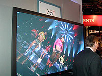 | サムスンの80インチプラズマ。右側の説明員と比べて下さい/LGの76インチプラズマ。これも十分大きいが |