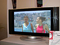| VIZONシリーズを展示。写真は37型プラズマ/FISHERブランドのミニコンポ |