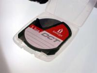 もうひとつは、同社のナノキュービック技術と、アイオメガのMRヘッド技術を組み合わせて実現する、1.5GBの大容量リムーバブルメディア「DCTディスク」である。DCTはデジタル・キャプチャ・テクノロジーの略で、高密度の磁気記録技術が基盤にある。ディスクのサイズは僅か1.8インチ(約5cm)しかなく、様々なAV機器やPCに利用することが可能だ。ドライブの形態も内蔵タイプ、PCカードドライブ、外付けUSBタイプと3種類の開発を終えており、一部はすでに同社ブースに展示されていた。