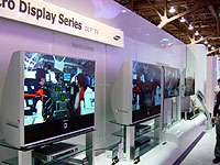 特に大型サイズのディスプレイは57インチ液晶、80インチプラズマが展示され、大型サイズディスプレイの生産能力を誇示するように堂々と数多くの製品が展示されていた。完成度の高さでは特にDLPリアプロが一番で、大きな画面サイズでもその色数の豊富さ、解像力の高さで群を抜いているという印象があった。ちなみにデバイスはテキサス・インスツルメンツ製のものを使用している。