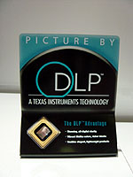 | 左)DLPリアプロジェクションテレビを数多く展示 右)DLPデバイスにはテキサス・インスツルメンツのDLPデバイスを使用 |