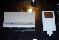 これはアルパインがほとんどのカーオーディオに搭載している『Ai-NET』によってコントロールを可能にするもので、「iPod Ready Interface kit」と名付けられている。このキットを「Ai-NET」対応のカーオーディオに接続すれば、iPodがカーオーディオ側から自由にコントロールが可能になり、そこには再生中の曲の情報(プレイリスト、アルバム、アーティスト、タイトルなど)までも表示ができるようになるというわけだ。また、接続と同時にiPodの充電も可能となり、クルマで楽しんだ後はそのまま持ち出すことも可能になる。