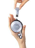 この"pavit"を採用したポータブルタイプのUSBメモリープレーヤーが「AZ-ES256」をはじめとするアイワの新製品群だ。「AZ-ES256」は256MBの"pavit"を付属。PCからMP3フォーマットのファイルを"pavit"に保存して楽しむ。51.2gの軽量ボディの本体を首からかけて使用できるネックストラップデザインを採用。約60曲の音楽ファイルが保存できる。圧縮された音楽データをより高音質にする「MP3 Digital Sound Enhancer」を搭載。ほか、音楽データの管理用ユーティリティソフト「Music Transfer」を付属する。シルバー、レッド、ブルー、グリーンのカラーバリエーションを揃える。