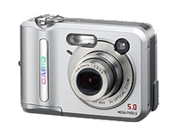 本機は、高画質を実現する500万画素CCDを採用したほか、見やすい大画面2.0型デジタルインターフェースTFT液晶を搭載。また、光学3倍ズームを搭載した。記録媒体は、9.7MB内蔵フラッシュメモリーとSD/MMDメモリーカードだ。