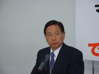 | 新店の概要と意気込みを発表するヨドバシカメラ・藤沢社長(左)。オープンは明日3日9時半 |