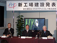 会見の冒頭、秋草会長が登壇し、「富士通は30年以上に渡りプラズマディスプレイの開発に携わってきた。薄型テレビの隆盛により、独自技術が市場に受け入れられていることを誇りに思う。03年度からFHPも事業が軌道に乗ったが、今後は韓国勢が追い上げてくることが予想される。これに対抗するため、新工場で飛躍をねらう」と挨拶した。