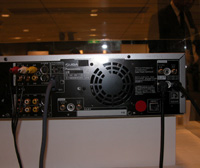 同社のBD/DVDレコーダーについて、詳細な情報が同社より明らかにされるのはどうやら今年の初夏ごろになりそうだ。既に弊誌「AVレビュー 114号」でもレポートされている通り、本機では世界初のBlu-rayディスク2層記録への対応、DVD-RAM/-Rへの録画再生対応を実現した点などが話題となっている。本日の展示会では、現時点で本機に採用される予定となっているスペックの詳細を確認した。あくまで現時点での仕様であるが、本機に搭載されるドライブはBD/DVD兼用のドライブが1機のみとなる見込みで、BD←→DVD相互間でのダビングには対応しない。また背面パネルにはLAN端子、電話回線端子も搭載されていたが、こちらの仕様についても今後変更される可能性があるとのことだ。ちなみに本日のプラズマテレビを使ったデモンストレーション映像はD端子経由で出力されていた。