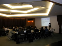 | 左)「DVDレコーダーワーキンググループ」のチェアマン、パイオニア(株)の石井英宏氏 右)ラウンドロビンテスト定期全体会議の模様 |