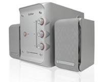 「e3100」●出力(トータル):RMS 8W×2+12W ●入力インピーダンス:10Kオーム ●入力感度:450mV ●入力端子:RCAステレオピンジャック ●バスユニット:5インチアルミニウムコイル、4オーム ●ミッドレンジユニット:3インチペーパーコイル、4オーム ●ツイータユニット:1インチPV膜ドーム ●周波数特性:45Hz~20KHz ●外形寸法:サブウーファー 57W×235H×334Dmm、サテライトスピーカー 91W×172H×139Dmm ●質量:約7Kg