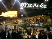 ■写真左:やはり、衛星放送オタクの私としては「NAB2004サテライトメモリアル」として、パンナムサット(=PAS。ディレクTVの子会社として出発したはずだったのに・・・?)が20日に催したパーティにいった次第。