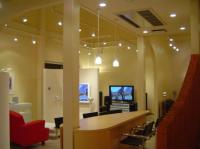 イタリアのリゾートホテルをイメージしたショップ内は吹き抜け高さ8mの大空間で、その空間を利用した視聴スペースは全部で7つ。20畳のメインシアタールームはクレストロンでコントロールされ、B&Wのインウォールスピーカーや電動昇降機を使ったプロジェクターインストールなど新しい提案が満載です。