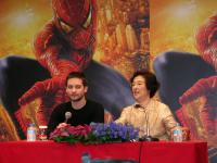 会場からの質問に、トビー・マグワイアは「2部ならではのストーリーに合わせた役作りをしており、ドラマティックなキャラクターの変化こそないが、成長したキャラクターの変化や、人間関係を深く描いている」と答えた。また撮影のウラ話も語り、「今回、サム・ライミ監督は前作で得たノウハウを生かし、CGをよりベターなものにしたいと考え撮影に臨んでいたので、さらにファンタスティックなアクションシーンが楽しめるだろう」とのことだった。出席者からの「今回の撮影で苦労したことは?」との質問には「電車のシーン」と答え、「非常に複雑なスタントを要求され、撮影に3〜4週間もかかった」と苦笑いをしていた。