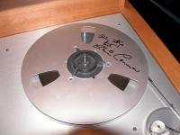 | 左)日本ビクター(株)のマスタリングエンジニア、小鐵徹氏 右)GML幻の音源を収録したアナログテープ |