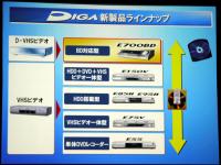 続いて同社パナソニックマーケティング本部商品企画グループ参事の石原史康氏が登壇し、レコーダーとメディア新製品の詳細を説明した。石原氏は「これからは標準画質はビデオデッキからDVDレコーダー、ハイビジョン画質はD-VHSデッキからBlu-rayディスクレコーダーへと需要が切り替わるであろう。」と同社の予測を示した。Blu-rayディスクの新製品については、ハイビジョン放送を余裕をもって録画できる最大36Mbpsの高速転送レートを実現し、またコピーワンスコンテンツの録画にも対応する高信頼性を実現したと、その特徴が石原氏より語られた。