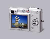 ●撮像素子:1/2.5型正方画素原色CCD ●記録媒体:内蔵フラッシュメモリー(画像記録エリア 9.3MB)、SD/MMCメモリーカード対応 ●ズーム:光学 3倍、デジタル 4倍 ●モニター:2.5型デジタルインターフェースTFTカラー液晶 ●外形寸法:87W×58H×22.5Dmm(突起部除く) ●質量:約130g