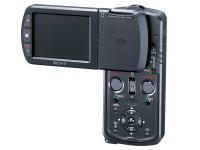 さらに本機は、液晶画面部分が90度可動するフリップデザインを採用。液晶モニターも前後方向に可動する。また、液晶横に撮影時の動画・静止画の記録や再生時のファイル送り・再生が可能なボタンを配置することで、「自分撮り」やビューワーとしてもより快適に使える。