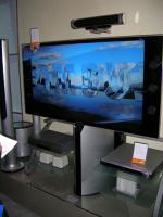 50インチのプラズマテレビ新製品「HPP5091」では、専用のセットトップボックスによるHDソースのワイヤレス伝送技術が紹介されていた。外付けのチューナー内蔵セットトップボックスから802.11aの方式で伝送した映像信号を、ディスプレイ上部に設置したレシーバーで受信し表示するというもの。パネルは1,366×768ドットの解像度を実現。セットトップボックスにはHDMI端子、DVI端子を装備。11,999ドルの価格で今年末に発売を予定している。