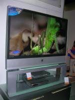 DLP方式のリアプロジェクションテレビでは、デザインにも注力したという50インチサイズの「HLP5085W」が紹介されていた。こちらはTI社のHD2+を採用し、2,500対1の高コントラストを実現した。価格は4,199ドル。本機よりも画面サイズの大きい56インチモデルもラインナップするという。また、TI社の最新デバイスであるHD3チップを搭載したDLPリアプロの新製品も紹介されていた。61/50/46インチが用意され、61インチのもので4,499ドルの価格が設定されている。