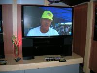 本機は82インチの巨大なディスプレイを搭載し、1920×1080ドットのHD対応パネルLCOSチップを3枚装備している。i.Linkケーブル1本で、映像・音声の伝送と制御信号の伝送が実現される「HAVi」規格に対応する。フロアスタンドキャビネットとの一体成形とし、HD放送を録画できる120GBハードディスクレコーダーを内蔵している。米国での販売価格は50,000ドル。来月には本シリーズの新製品が発売を予定しているという。