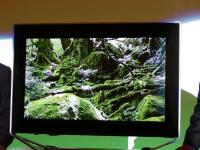発表会場には36インチの試作機が置かれ、実際の映像を確認することができた。この試作機の情報をお伝えしよう。