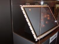試作機のパネルサイズは36インチで、画面のサイズは35インチ。解像度はワイドXGAで、720pの映像を表示していた。製品化第1弾となる50インチ級のモデルでは1920×1080のフルHD解像度を実現するという。技術解説員によると「40インチ、30インチ級でフルHDを実現することも可能」とのことだ。