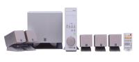 ●出力:サテライト 6W×5、サブウーファー 18W ●入力感度:200mV ●ヘッドホン出力レベル:450mV/30(1kHz、200mV) ●再生周波数帯域:40Hz〜20kHz ●入力端子:RCAピン×1、光デジタル×2、同軸デジタル×1 ●出力端子:RCAピン×6ch ●外形寸法:102W×260H×196Dmm(スタンド含む) ●質量:1.3Kg