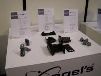 同社ブースでは、機器の設置を行うVogelsブランドのアクセサリーも豊富に展示されていた。プロジェクターハンガー「EPC4010」は、ユニバーサル設計で様々なプロジェクターに対応する。価格は26,250円。スピーカーブラケットも様々なタイプが用意されている。