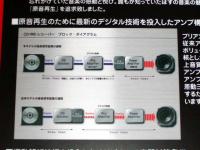 ●ケンウッドブースは、カーオーディオをメインに据えた構成。家庭用機器では、今回初めて公開されたミニコンポに注目したい。年内に発売を予定しているという本機は、2ウェイスピーカーとCD/MDレシーバーで構成される。音質を高めるため、CD/MDレシーバー部ではプリアンプ部をデジタル化。さらに、シャーシは「Vibration Control」を採用。3Dモデリング設計で振動解析などを行っているという。また、マイクを使って音場を補正する「ROOM EQ」機能も装備し、部屋の音響特性に合わせ、音圧レベルやスピーカーとの距離、周波数特性などを自動で調整する。