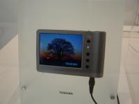 会場には、今回発表された新製品だけでなく、モバイル放送の受信端末、SDカードビューワー、5インチQVGAの有機ELディスプレイを搭載した次世代ビューワー、同社が新たに開発をはじめる0.85型HDD、そのHDDを搭載したデジタルカメラのモックアップなど、現在開発を進めている様々な未来商品を展示。「映像の東芝」復権に賭ける同社の強い意気込みが示された。