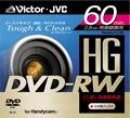 「VD-W60G」は、同社DVD-RWディスク「HG」シリーズの高耐久性・高安定性などの特性をそのままに、独自の高精度接着層とディスク貼り合わせ技術により安定した高画質・長時間録画を実現した両面記録モデル。60分のビデオ記録が可能だ。