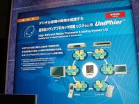 同社のブースで注目なのは、高性能メディアプロセッサー システムLSI「UniPhier(ユニフィエ)」だ。ソニーと東芝が共同で開発している「CELL」の松下版というべきもので、様々なAV機器の中核に搭載することが想定されている。携帯電話用、小型プレーヤー用などいくつかの種類があるが、いずれもソフトウェアを書き換えることで様々な動作に対応するのが特徴となる。たとえば、1つのチップでH.264/MPEG4/MPEG2のデコードに対応するなど、非常に柔軟な設計が施されている。また、新たなメディアプロセッサーを搭載することでAVデータのリアルタイム処理を行い、高画質・高音質を実現するという触れ込みなのも見逃せないポイントだ。「UniPhier(ユニフィエ)」を搭載した製品は2005年に登場する予定。