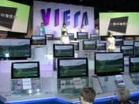 ●松下電器ブースでは、正面にVIERAを大量展示し、その真ん中にはシリーズ最大の65V型モデル「TH-65DX300」が鎮座する。
