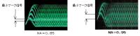 形状精度0.1μm以下の超精密成型技術と、性能と量産性を両立させたピンポイント設計技術を組み合わせることで、NA0.95の超高開口数ながら、直径2.1mm、厚さ1.2mmという超小型サイズを実現した。