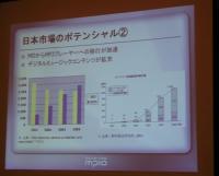 二宮氏からはMPIOブランドの日本市場における販売戦略も明らかにされた。日本はポータブルオーディオプレーヤーのメッカであり、ハイテク志向の消費者も多く、大変重要性の高い市場であるとMPIOブランドは認識しているようだ。日本国内においては、2006年までにMP3プレーヤーの市場が280万台に達し、MDプレーヤー市場と同規模、またはそれ以上の規模に成長すると予測している。外的要因としてオンラインの音楽配信も伸び続ける環境下において、同社は2004年下半期にはフラッシュメモリータイプで22%、MP3プレーヤー全体では7%のシェアを獲得し、成長を遂げたいと二宮氏は語った。