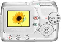 本機は、簡単操作と使いやすさにこだわった初心者向けのデジタルカメラ。有効画素数は3.2メガピクセルで、光学3倍ズームレンズを搭載した。“1ボタン1機能”を基本に設計された本機は、「撮る」「見る」「消す」などの操作を独立したボタンとして配置することでスムーズな操作性を実現している。