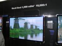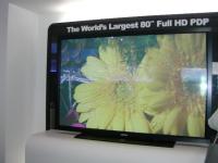 サムスンSDIブースでは、PDPを中心に展示。42インチ、50インチ、63インチの各モデルが置かれ、中でも42インチは明るさ1,500cd/m2、コントラスト比10,000対1という世界一のスペックを実現した製品として訴求されていた。また、プラズマディスプレイとして世界最大となる80インチのフルHDパネルも注目を集めていた。本機の明るさは1,000cd/m2、コントラスト比は2,000対1。