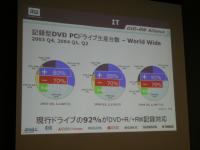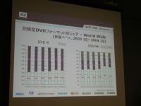 最後に張間氏は「記録型DVDディスクの世界シェア」を説明した。同氏は「現在はDVD-Rが優勢な状況」と認めながらも、「これはデュプリケーションの市場においてまだDVD-Rが強いためであり、リテールベースではDVD+Rが着実に成長を遂げている。今後は書き換え型の市場でシェアを広げていくことができるだろう」と意気込みを語り、これからも日本市場を中心にますますのシェア拡大を狙って行く考えを明らかにした。