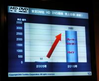 藤井氏は東芝のHD DVD製品について、その商品化に向けたロードマップも示した。2005年には本事業にさらに力を傾けるとともに、「2005年末にはプレーヤー、HDD付レコーダーをリリースする準備が着々と進んでいる」ことを再度強調した。第四四半期中にはドライブ、レコーダー、プレーヤーをリリースするとともに、AVノートPCにも搭載を実現する考えを明らかにした。またHD DVD市場全体の予測として、藤井氏は「2010年にはHD DVDレコーダーで8000万台、HD DVDプレーヤーで3億台をめざすとともに、売上ベースでは同年に3000億円の事業規模へ拡大したい」と意気込みを語り、コンテンツホルダー/プロバイダーとの共生にも言及しつつ、東芝がHD DVD規格普及のための中心的役割を果たしていく考えを示した。