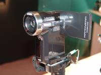 続いて注目したのがDCR-PC1000だ。こちらは撮像素子に3枚のCMOSを採用し、その上で3Wという低消費電力を実現した。CMOSは広いダイナミックレンジを備えることで3CCDに匹敵する高画質を追求。これで長時間記録を可能としたのだ。24Pにも対応することで映画ライクな撮影にも対応。液晶モニターもタッチパネル式ハイブリッドのワイド2.7型とすることで使い勝手と視認性を高めている。CMOSを使ったことによるノイズ対策が気になるところだが、この軽量と高画質を実現しているとすれば大いに気になる存在ではある。
