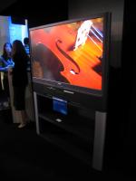 エプソンは北米のみならず国内でもリアプロを販売している数少ないメーカーだが、CESでは、液晶方式の57インチトゥルーHD(1920×1080プログレッシブ)の試作機を展示した。エプソンのブースで印象的だったのは、「DLPと液晶」の画質比較を徹底的に行っていたことだ。特にトゥルーHD(1080p)が現時点で商品化できているのは液晶方式とLCOS方式のみであることが謳われていた(DLPは試作レベルのみのため) 。