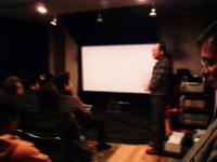 同店の店長、森義範氏のあいさつに続いて、登場したのは日本ビクターのプロジェクター部門の主幹技師、小林氏。同氏からのプレゼンテーションという形で会は進行した。D-ILA方式の簡単な紹介に続いて、デジタルハイビジョン放送を記録したD-VHSビデオデッキから映像を出力。NHK-BSハイビジョン『夢音楽館』から中島美嘉の熱唱場面や『ニュー・イヤー・コンサート』のワンシーン、WOWOWからのエアチェックでは『007 ダイ・アナザーデイ』『パイレーツ・オブ・カリビアン』『スター・ウォーズ エピソードI』『ロード・オブ・ザ・リング 王の帰還』『バットマン・リターンズ』『モンスターズ・インク』『リロ・アンド・スティッチ』など、またDVDではおなじみ『恋におちたシェイクスピア』などを鑑賞。