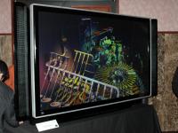 リアプロジェクションテレビにおいては、現在シェアが急成長を遂げており、DLP方式を採用するブランドも拡大中であるという。同社では1080P対応のDMDパネルも開発を完了。本パネルは、解像度960×1,080ドットのDMD素子のミラーを通常の2倍の速度で駆動することで1つの画素から2ドット分の描画画素を作り出す技術「SmoothPicture」を採用しているもので、同パネル搭載のリアプロジェクションテレビは本年中に発売されるという。