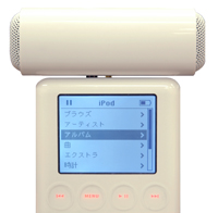 本製品は第三世代以降のiPod、iPod mini、iPod Shuffle、iPod Photoに対応する小型スピーカーだ。電源は単三アルカリ乾電池一本で駆動し、クリアな音質を実現しながら、約10時間の連続使用を可能にしている。