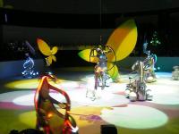 トヨタグループ館の中は、ロボットショウが展開されていた。ロボットがラッパを演奏したり、人間とロボットの掛け合いがある。丸いスケートリンクを囲んで見る感じだ。1人乗りの未来ビークル「i-unit」が自動運転で走っていた。
