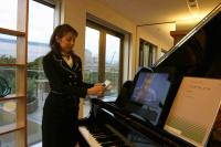 ユビキタス・コミュニケータでチケットのIDタグを読み取ると、ピアノの自動演奏が始まる
