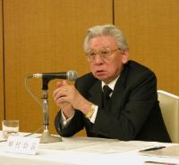 続いて本日の決定事項について、団体の会長を務める(株)東北新社代表取締役会長の植村伴次郎氏が詳細を説明した。